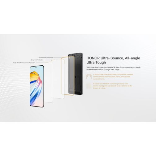With three-level protection by HONOR Ultra-Bounce, provide you the all-round drop resistance, All-angle Ultra Tough